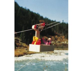 Mit dem Zugseil wird die MINI-SEILBAHN nach oben gezogen und vorsichtig wieder heruntergelassen. Natürlich kann die Gondel auch frei nach unten sausen.