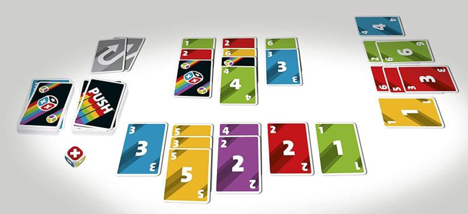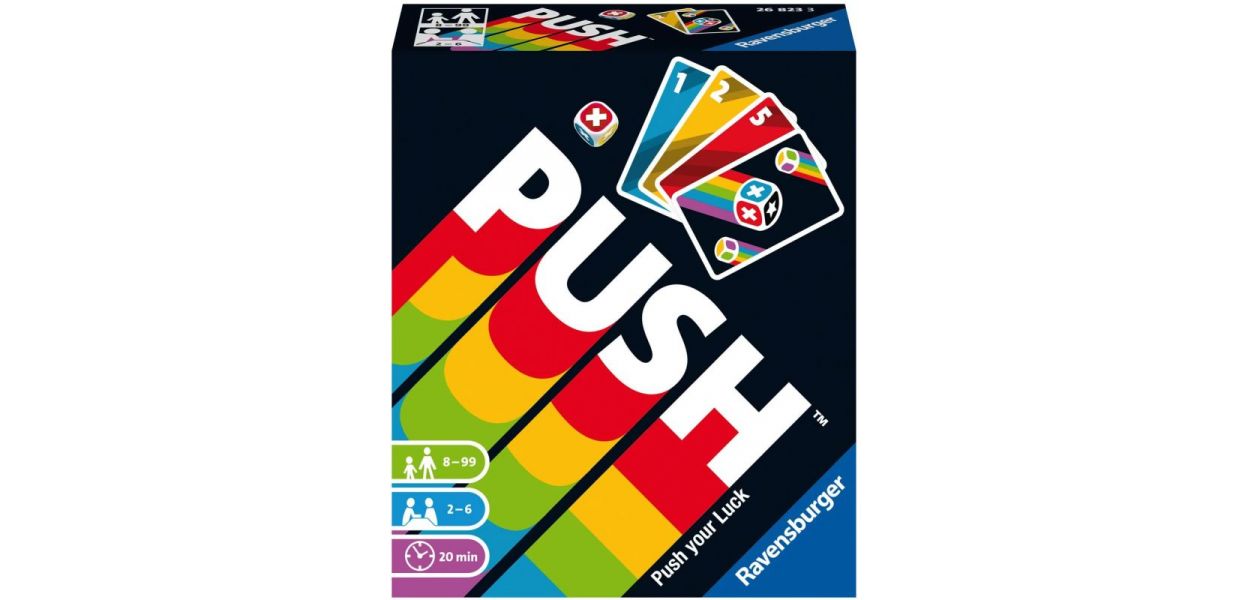 Push your luck. Volles Risiko oder Nummer sicher? Stell dein Glück bei diesem aufregenden Kartenspiel auf die Probe und schnapp dir die besten Kartenreihen für den Sieg. Du allein entscheidest, wie viele Karten du ziehen willst. Doch Vorsicht - Farben und Zahlen dürfen sich nicht wiederholen. Du kannst eine gezogene Karte nicht legen? Dann hast du wohl zu viel riskiert, musst würfeln und verlierst zur Strafe wertvolle Punkte. PUSH - der ultimative Nervenkitzel für die ganze Familie.