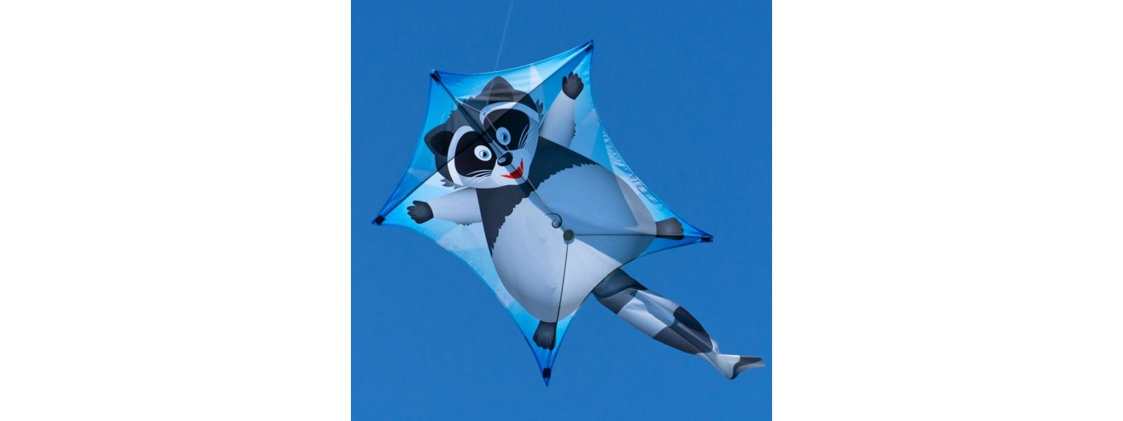 Durch sein leichtes Gestänge und die große Segelfläche ist der Penta Waschbär sehr gut für leichten Wind geeignet. Für Stabilität in der Luft sorgt zusätzlich ein 110cm langer Motivschwanz.