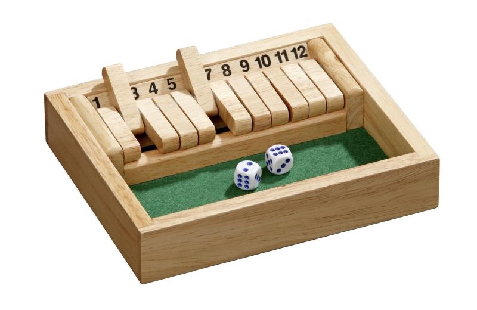 Shut the Box ist ein einfaches, aber sehr spannendes Würfelspiel für beliebig viele Personen. Dabei werden nach jedem Wurf mit den Würfeln entsprechend der angezeigten Augenzahl eine oder mehrere Zahlen umgeklappt. Ziel des Spiels ist es, alle schwenkbaren Zahlenklappen zu schließen.