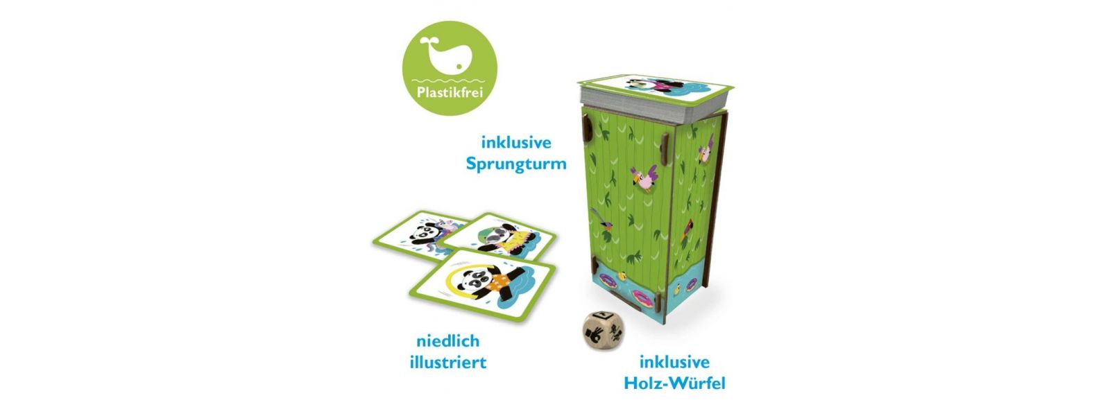 Panda-Pool-Party - das spannende und unterhaltsame Kartenspiel für Kinder ab 4 Jahren. Helft den Pandas in den kühlen Pool zu springen. Mit einem bunten Würfel und liebevoll gestalteten Karten müssen die Kinder ihre Geschicklichkeit unter Beweis stellen, um die Pandas sicher ins kühle Nass zu befördern - aber Achtung! Es sollten nie mehr als 5 gleichzeitig ins Wasser springen, sonst wird es zu eng!