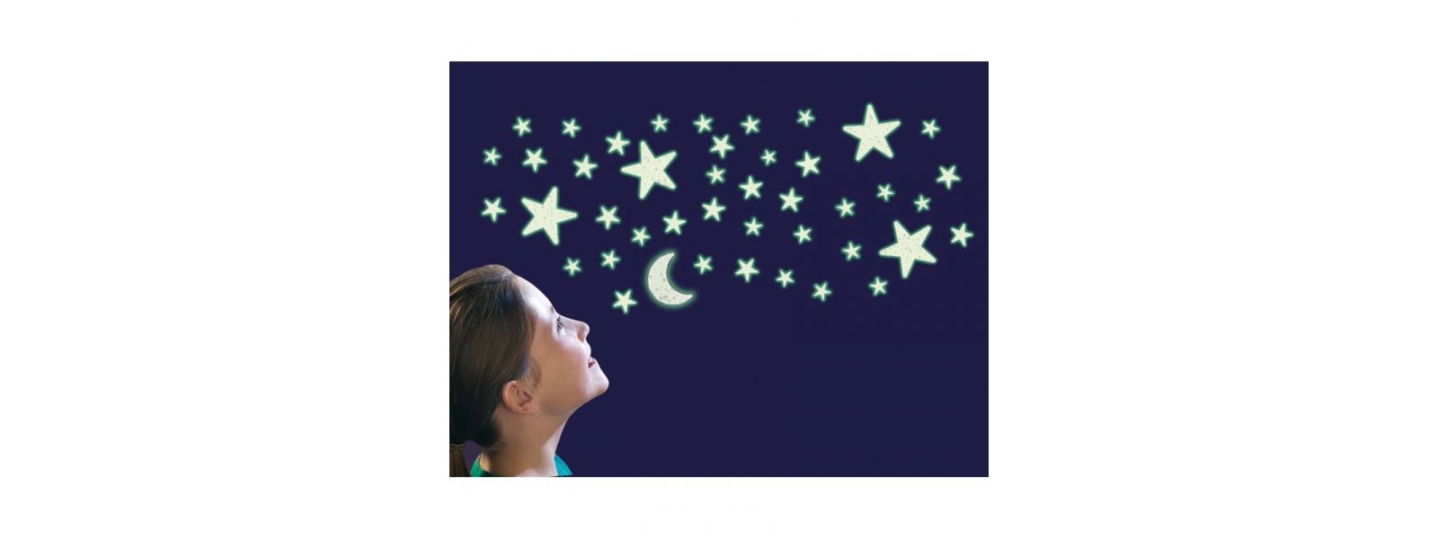 Mit den im Dunkeln leuchtenden Glow Stars und weiteren themenbezogenen Glow-Motiven lassen sich Decken und Wände in einen wunderschönen Nachthimmel verwandeln. Sie eignen sich