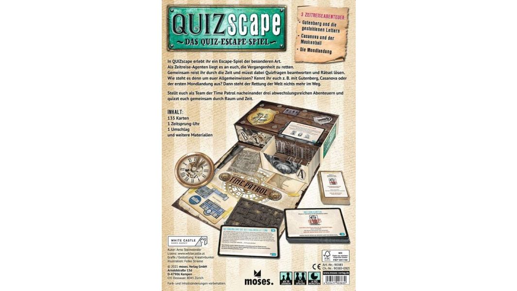 Bereits der Vorgänger konnte mit dem innovativen Spielprinzip begeistern und der Nachfolgers steht diesem in Nichts nach: Ein Quiz-Spiel kombiniert mit dem absoluten Trendthema Escape-Games. Garniert wird das spannende Abenteuer mit einer fesselnden Zeitreise-Geschichte, die die Spieler in drei abwechslungsreiche Welten voller Rätsel, Quizfragen und Überraschungen entführt.