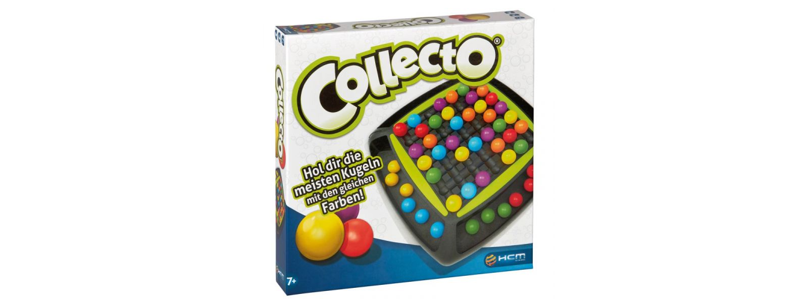 Eine ruhige Kugel schieben? Im Gegenteil, bei Collecto geht's mit Köpfchen und mit Strategie zur Sache! Gewinner ist, wer am Ende die meisten der 48 bunten Kugeln besitzt. Verschiebt man die bunten Kugelreihen so, dass mindestens zwei Kugeln der gleichen Farbe nebeneinander zum Liegen kommen, darf man diese beiden Kugeln (oder mehr) als Beute einsammeln. Der ziehende Spieler verschiebt eine Kugelreihe so weit über das Spielfeld, bis die vorderste Kugel an eine andere Kugel auf dem Spielfeld anstößt oder wenn die vorderste Kugel auf dem letzten Feld vor dem Spielfeldrand ankommt. Damit endet sein Zug. Geschoben werden dürfen nur ganze Kugelreihen horizontal oder vertikal auf dem Spielbrett.