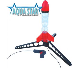Die Rakete ohne Verschleiß, da nur mit Wasser zu betreiben. Funktioniert mit praktisch jeder PET-Flasche. Die Rakete fliegt je nach Luftdruck (durch eine Fahrradluftpumpe erzeugt) bis zu 100m hoch und ist vielfach wiederzuverwenden.