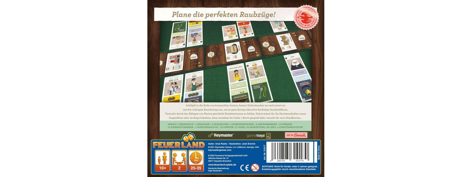 Caper Europe ist ein 2-Personen Spiel mit einem Karten-Drafting-Mechanismus.