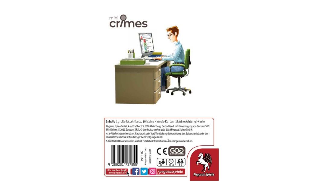 Die MiniCrimes Fälle sind kooperative Krimispiele, in denen die Spielenden ihre Beobachtungsgabe und ihre detektivischen Fähigkeiten unter Beweis stellen müssen, um einen mysteriösen Fall zu lösen. Sie untersuchen dabei den Tatort und bis zu 10 Hinweise, die sie mit Bedacht auswählen müssen, um das Geheimnis zu lüften!