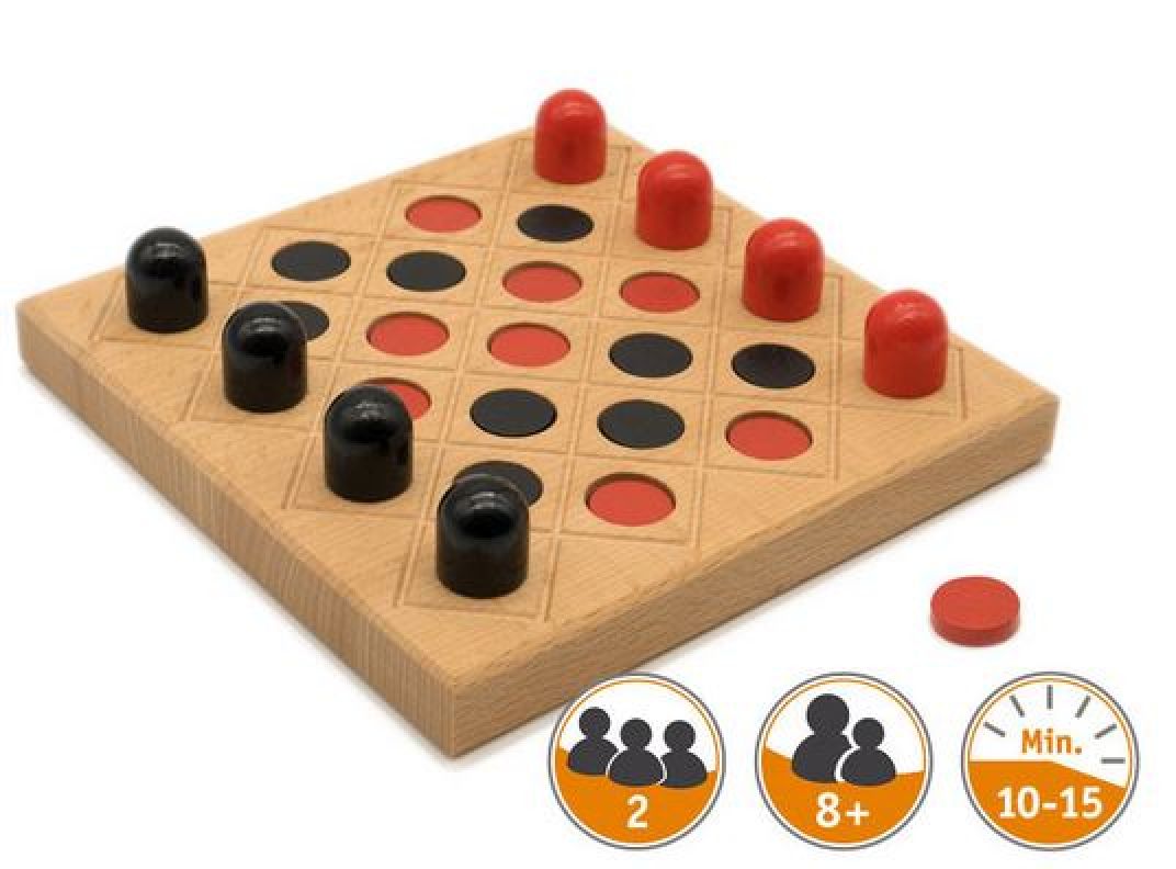 Wer zuerst mit allen 4 Spielsteinen die Zielfelder auf der anderen Seite erreicht, gewinnt.