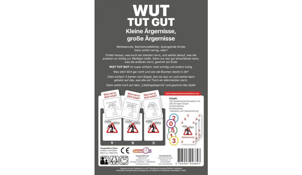 Wut tut gut ist das Partyspiel für frustrierte Leute und solche, die es werden wollen.