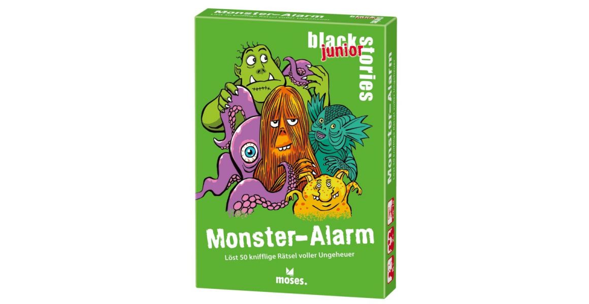 Schafft ihr es, die 50 verzwickten Rätsel voller Monster zu lösen?In den black stories junior Monster-Alarm! finden sich 50 knifflige Rätselgeschichten rund um Werwölfe, Vampire, Bigfoot, Nessie, Godzilla & Co. Hier wimmelt es vor haarsträubenden Kreaturen mit viel zu viel Fell und messerscharfen Zähnen. Ihr begegnet ihnen im tiefen Wasser und auf hohen Häusern und trefft Ungeheuer mit erschreckend vielen Augen oder extrem riesigen Pranken. Nur wer schlau kombiniert und geschickt um die Ecke denkt, kommt ihren monströsen Geheimnissen auf die Schliche. Wohliges Schaudern garantiert!So wird’s gespielt:Die Rateteam-Variante:Die black stories junior sind spannende Rätselgeschichten auf Karten, die es gemeinschaftlich zu knacken gilt. Nur der*die Expeditionsleiter*in kennt des Rätsels Lösung, denn er*sie liest das Rätsel auf der Vorderseite laut vor und darf zudem auch die Lösung auf der Rückseite genauestens studieren. Die Abenteurer*innen versuchen nun durchFragen, Raten und Tüfteln der Lösung Schritt für Schritt auf die Spur zu kommen.Rätselprofi-Spielvariante:Pro Spiel wird eine Rätselkarte gelöst. Nur die Spielleitung kennt die Lösung und das Rateteam nähert sich dieser Schritt für Schritt durch Fragen, Raten und Tüfteln ... wie gewohnt! Aber aufgepasst: Besonders clevere Fragen, die auf eine heiße Fährte führen, werden mit Punktechips belohnt. Der Ratefuchs, der das Rätsel löst, erhält zusätzlich 3 Punktechips. Wer am Ende des Spiels die meisten Punktechips gesammelt hat, gewinnt!