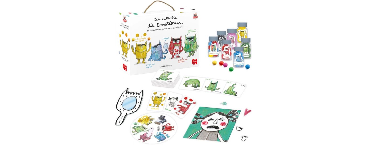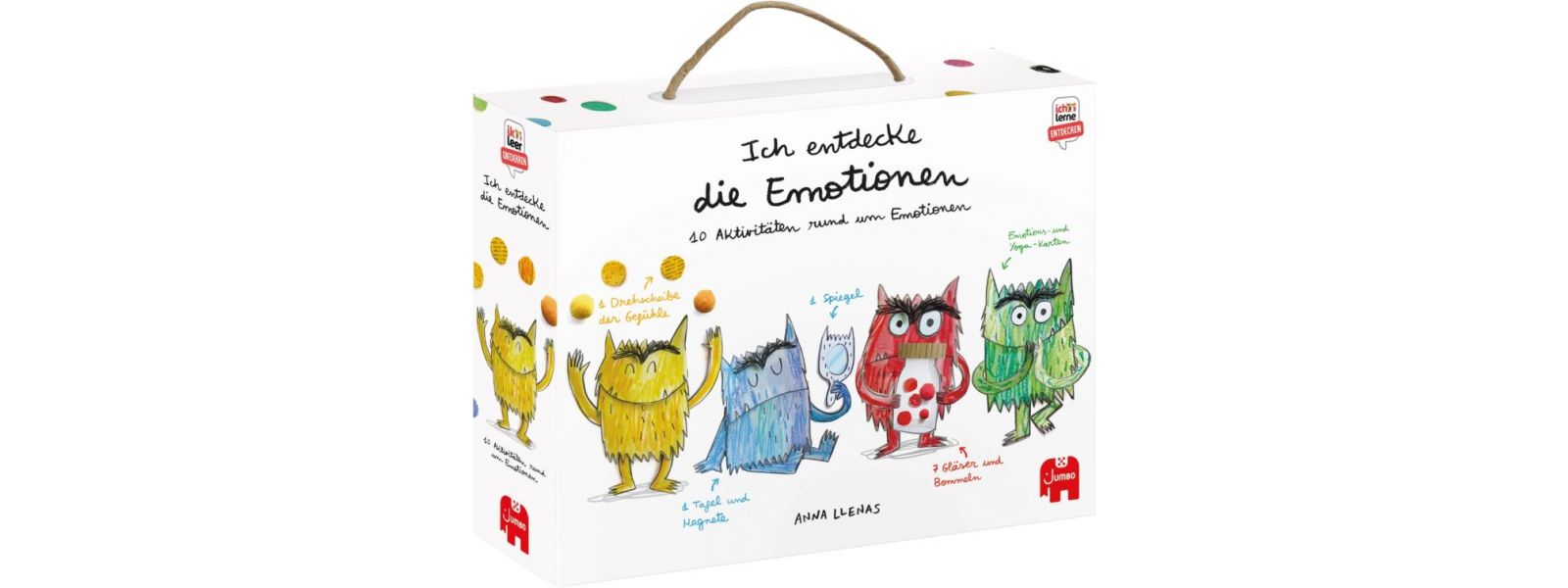Dieses Spiel basiert auf dem Buch Das Farbenmonster von Anna Llenas. Es hilft Kindern, ihre Gefühle zu entdecken, zu benennen und einzuordnen: Wut, Angst, Traurigkeit, Ruhe, Glück und Liebe. Das Spiel umfasst zehn originelle Aktivitäten.