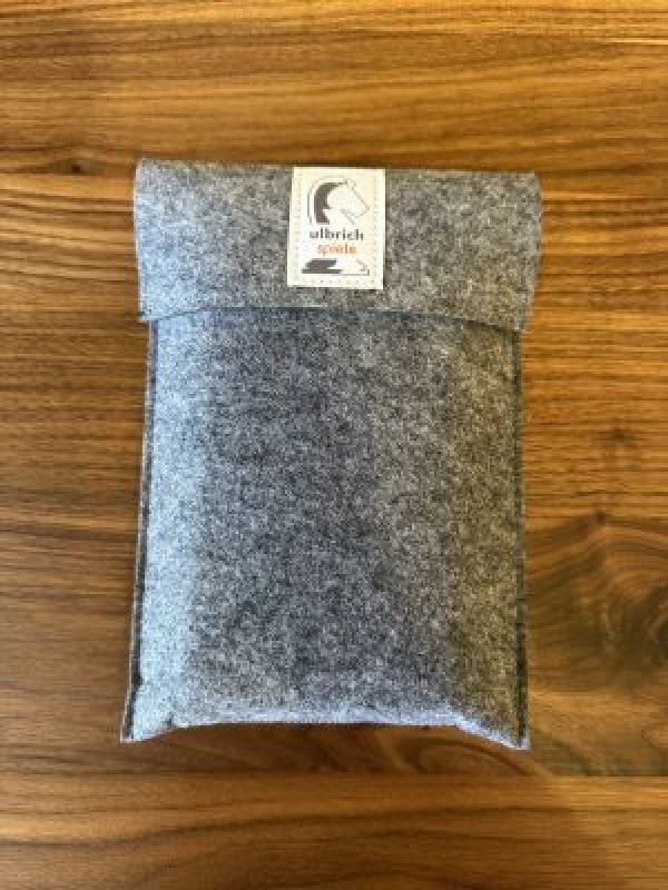 Filztasche mit unserem Logo für alle Reisebackgammon und kleine Reiseschach (19mm Feldgrösse).Maße: 305 x 160 x 5 mm.