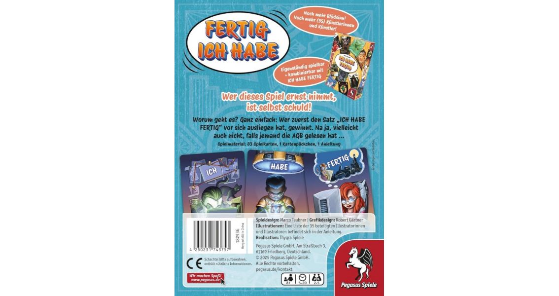 Das verrückte Kartenspiel ist zurück: Neue Karten vom blau leuchtenden Lehrmeister ihr bekommt! FERTIG ICH HABE ist sowohl eigenständig als auch in Kombination mit den Spielkarten von ICH HABE FERTIG spielbar.