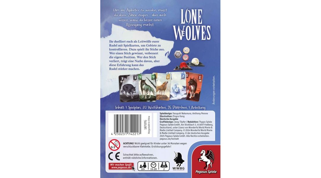 Ihr duelliert euch als Leitwölfe eurer Rudel mit Spielkarten, um Gebiete zu kontrollieren. Dazu spielt ihr Stiche aus. Wer einen Stich gewinnt, verbessert die eigene Position. Wer den Stich verliert, trägt eine Narbe davon, aber diese Erfahrung kann das Rudel stärker machen.