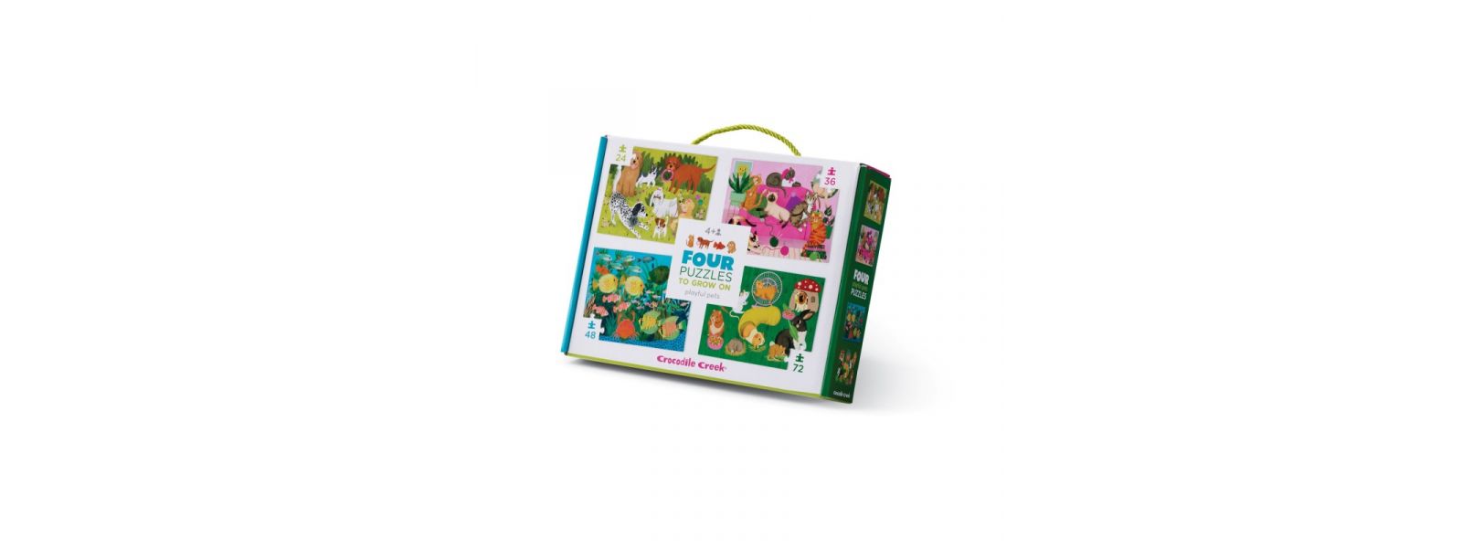 Dieses Set mit vier farbenfrohen Puzzles ist ideal für Kinder ab 4 Jahren und fördert spielerisch Konzentration und Denkvermögen. Mit 24 bis 72 Teilen bietet es jede Menge Abwechslung und vierfache Freude in einer Box!