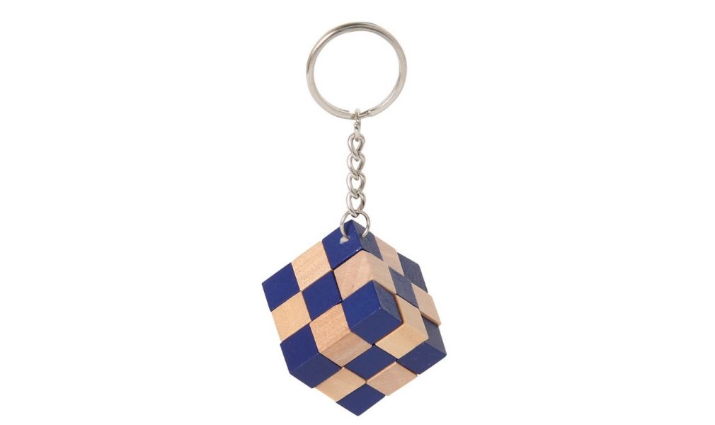 Würfelschlange Schlüsselanhänger mini: natur - blau (3 x 3 cm)