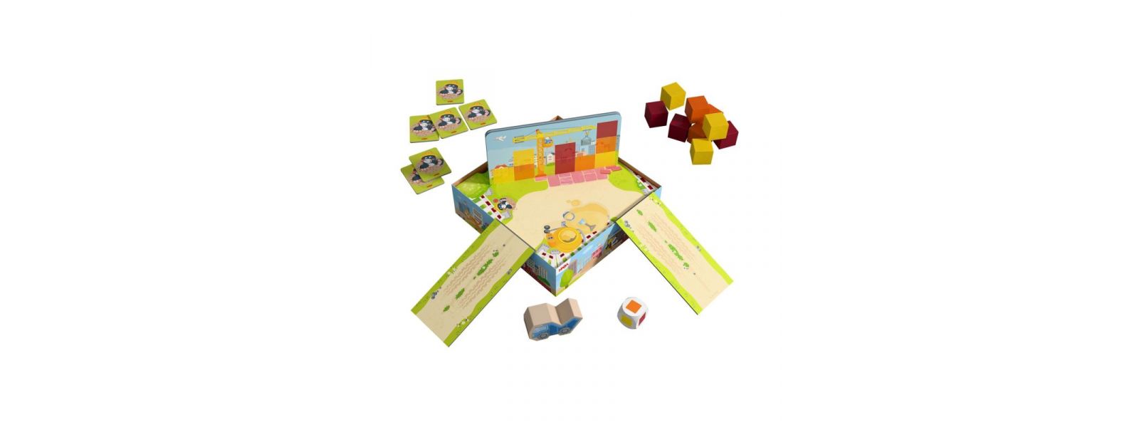 In Habahausen ist mächtig was los! An allen Ecken wird gebaut. Stockwerk für Stockwerk, Stein für Stein entstehen neue Häuser. Ärmel hoch und angepackt! Die Kinder bringen mit dem Muldenkipper die notwendigen Bausteine heran und führen den Kran zur richtigen Stelle. Schaffen sie es, alle Steine nach Bauplan zu stapeln, bevor der Arbeitstag endet?