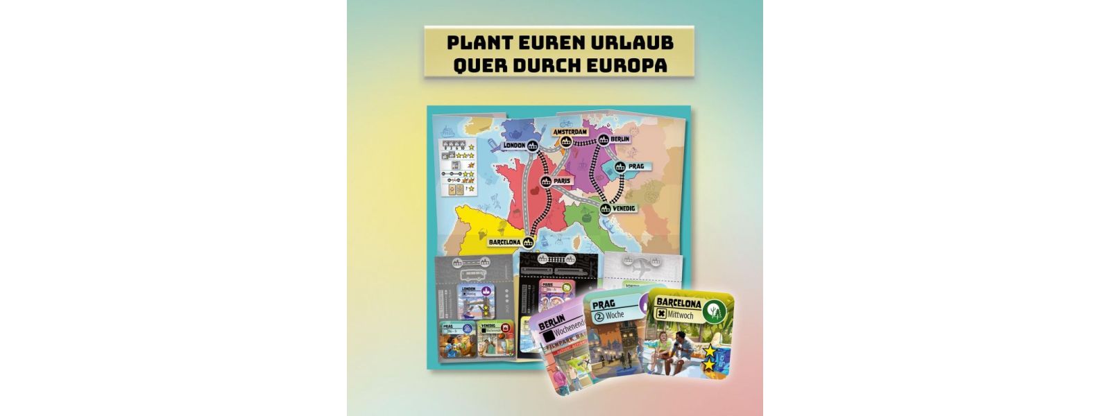 Drei Wochen Zeit für eure Europareise. Plant klug, kombiniert Städte und entscheidet, wie lange ihr bleibt. Ein einzelner Tag oder mehrere zusammenhängende Tage - längere Aufenthalte lohnen sich. Doch nur mit den passenden Verbindungen reist ihr erfolgreich weiter. Gestaltet euren ganz persönlichen Wochenplan und sammelt die meisten Sterne. Seid ihr bereit für eure perfekte Route?