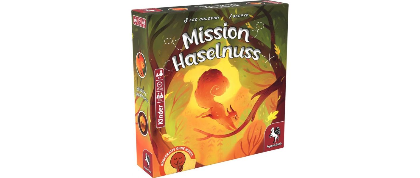 In dem kooperativen Mission Haselnuss ist es Aufgabe der Spielenden, das Eichhörnchen Eddie zurück zu seinem Nest zu führen und dabei möglichst wenige seiner Nussvorräte aufzubrauchen. In jeder Runde bewegen sie Eddie mit Haselnusskarten, die verschiedene Richtungen angeben, durch den Wald. Hierzu platzieren die Spielenden je eine Haselnusskarte verdeckt und ohne Absprache mit den anderen auf der Aktionstafel. Am Rundenende werden alle Karten von links nach rechts abgehandelt. Haben sich die Spielenden gegenseitig gut eingeschätzt, schafft Eddie es nach Hause bevor seine Haselnüsse ausgehen.