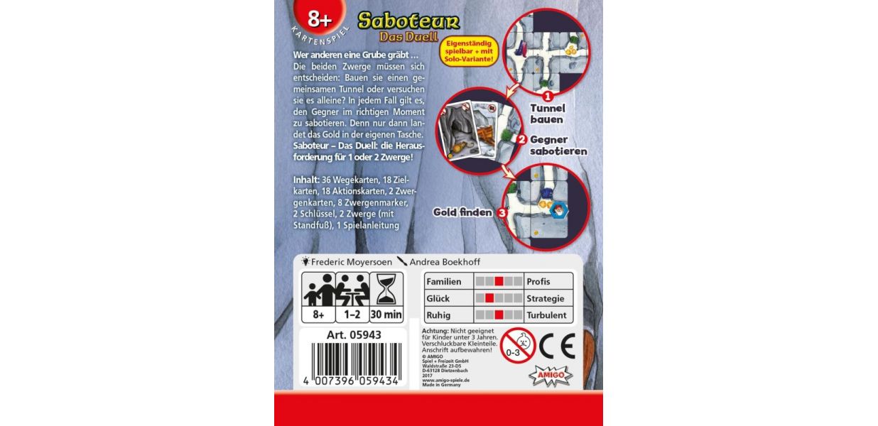 Die beiden Zwerge müssen sich entscheiden: Bauen sie einen gemeinsamen Tunnel oder versuchen sie es alleine? In jedem Fall gilt es, den Gegner im richtigen Moment zu sabotieren. Denn nur dann landet das Gold in der eigenen Tasche.