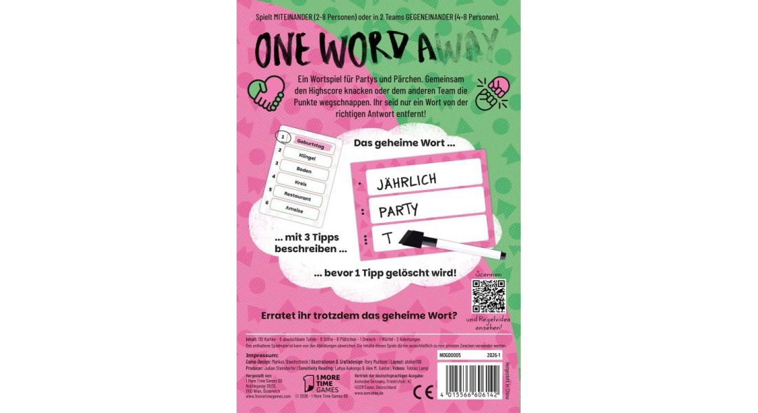 One Word Away ist ein Wortspiel für Partys und Pärchen.